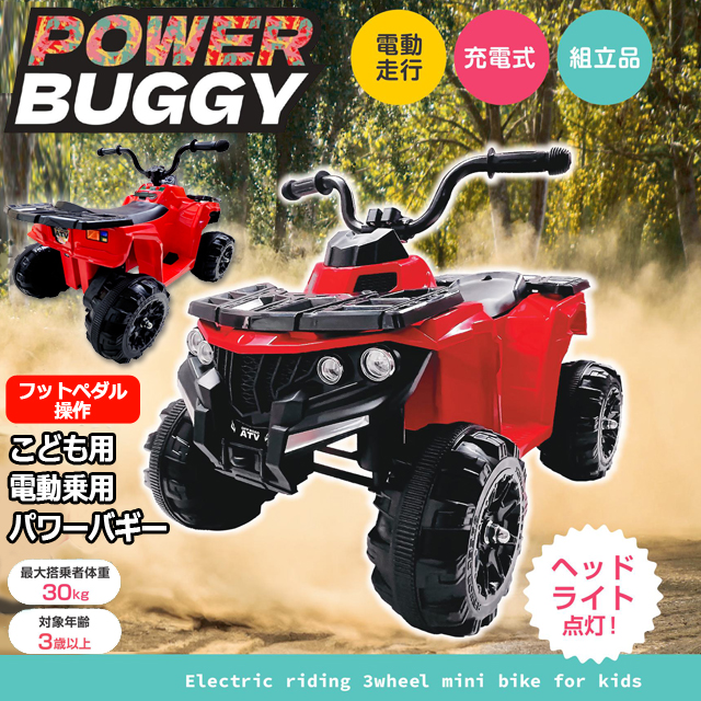 こども用電動乗用 パワーバギー 電動バギー 3歳以上 玩具 子ども用 子供用 乗用玩具 充電式 室内乗用具 4輪 フットペダル操作 光るヘッドライト キッズのりもの キッズクリスマス 耐荷重30kgまで