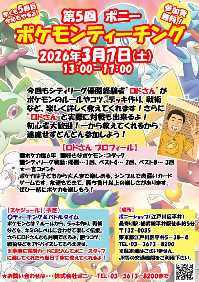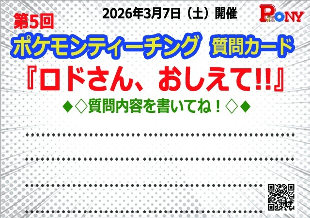 第5回ポケモンティーチング…3/7(土)開催決定!