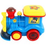 「線路は続くよどこまでも」の音楽とともに音と光を発してぐんぐん走る頼もしい機関車!壁に当たってもクルッと方向転換!