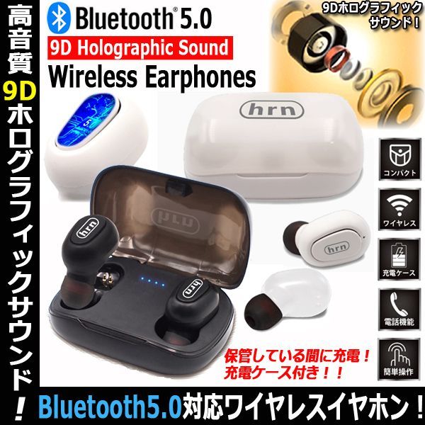 Bluetoothワイヤレスイヤホン9Dホログラフィックサウンド[充電ケース付き] [PAL-HRN-514-515]