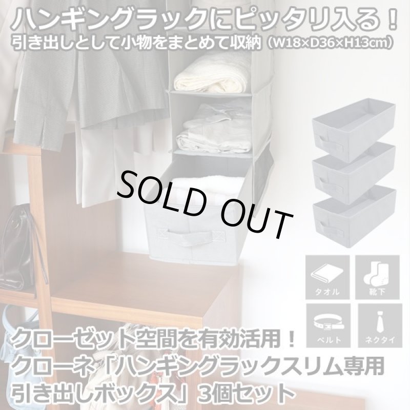 クローゼット空間を有効活用!クローネ「ハンギングラックスリム専用/引き出しボックス」3個セット [TYC-CLO-HIB-S]
