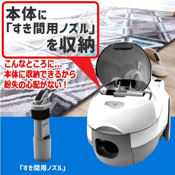 ●付属の「すき間用ノズル」は、本体に収納できるから紛失の心配がない!