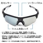 左右のレンズの間に光センサーとソーラーパネルを内蔵しています。光センサーが明るさを感知して、レンズの色の濃さを0.1秒以内に自動調整します。
