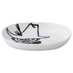 白さが際立つ素材のため、モノトーンの絵付けが浮き出るようでハッと目を引く、そんなアートディッシュ。