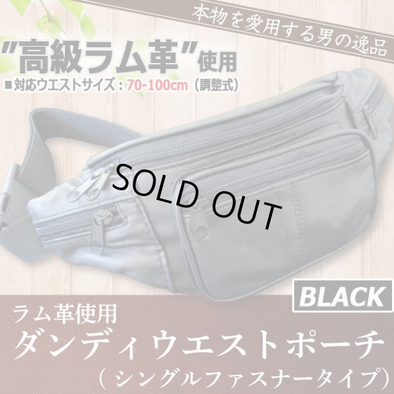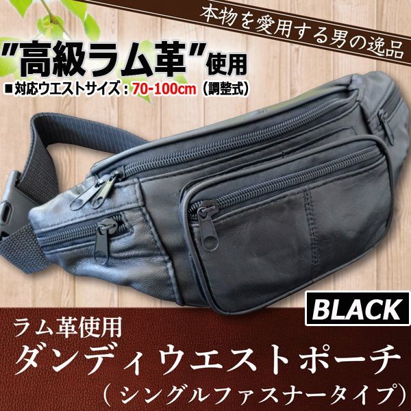 高級ラム革シングルファスナーベーシックウエストポーチ[ブラック] [SWI-B-00120]