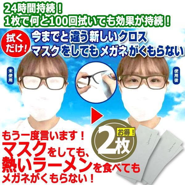 24時間効果!レンズがくもらなくなるメガネ拭きクロス[100回持続Ver.] 2枚組