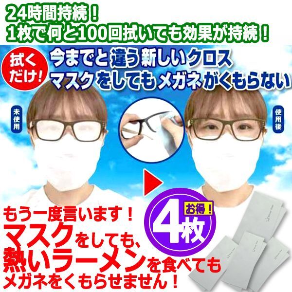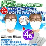 24時間効果!レンズがくもらなくなるメガネ拭きクロス[100回持続Ver.] 4枚組