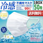 送料無料!1BOX50枚入り接触冷感高機能不織布マスク!