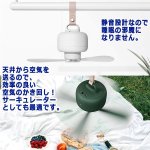 暑い季節や空気のかき回しに役立つ天井吊り下げ式コードレス扇風機がある