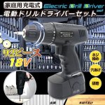 18Vパワー充電式!DIY92ピース電動ドリルドライバーセット[専用キャリーケース付き]