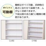 収納物の高さに合わせて設置でき無駄なく収納できます。下段は奥行の違う3種類の棚板となります。