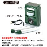 ■ソーラー充電:上部のソーラーパネルで太陽光のエネルギーを充電池に充電。