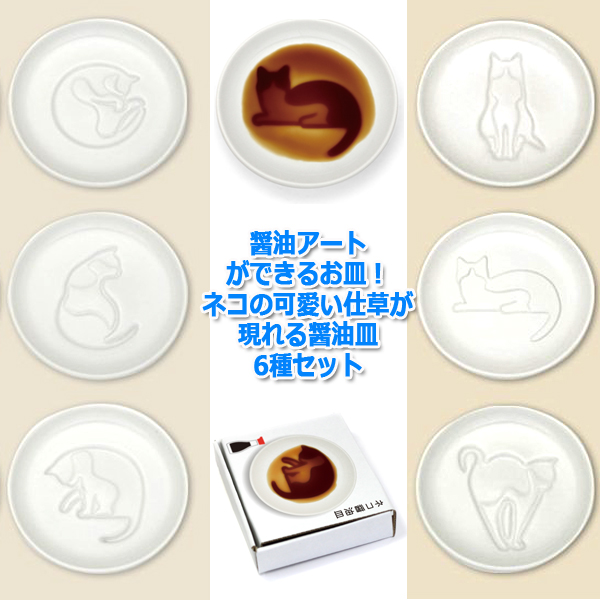 醤油アートができるお皿!ネコの可愛い仕草が現れる醤油皿6種セット [TIME-53-6S]