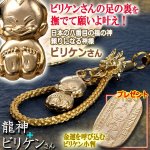 足の裏を撫でて幸運を!八番目の福の神ビリケンさん開運龍神ストラップ[金運小判付き]
