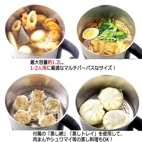 卓上で素早く調理!鍋型サイズ電気ケトル!多彩な料理が完成!!