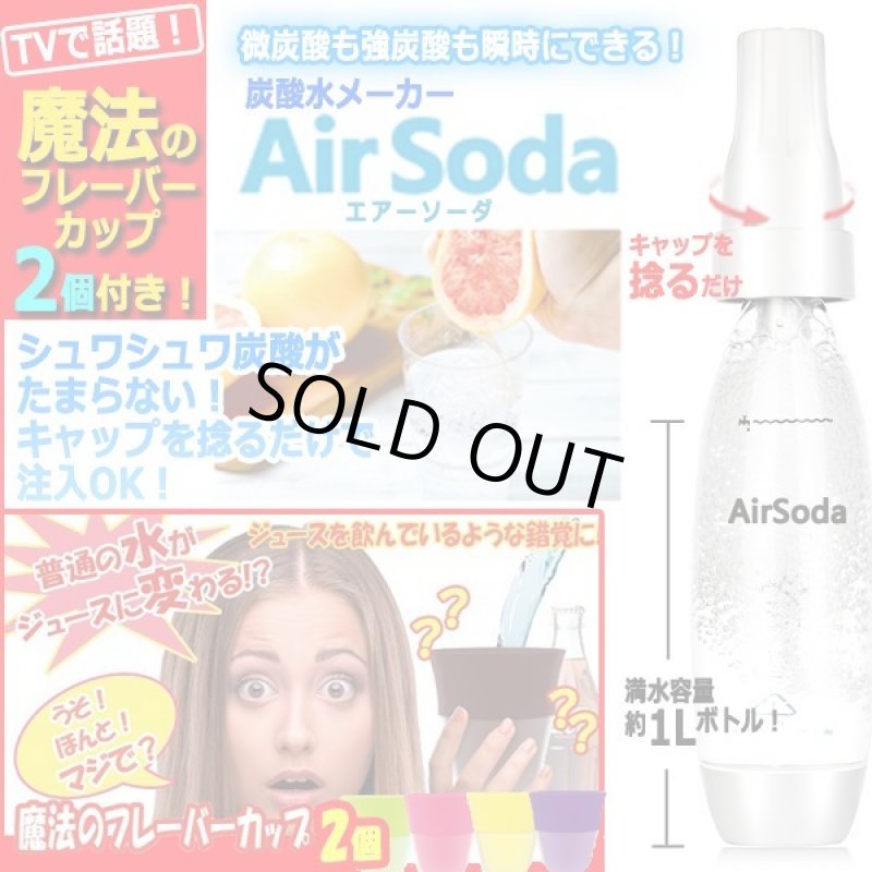 魔法のフレーバーカップ2個付き!炭酸水メーカー「AirSodaエアーソーダ」1L+専用ガスカートリッジ10本セット