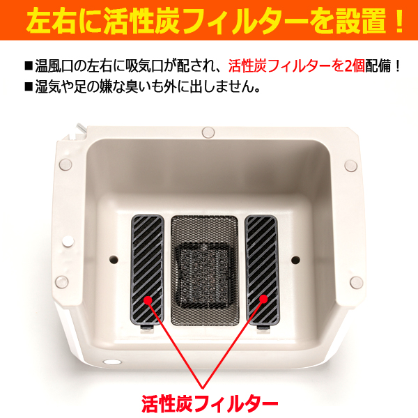 温風口左右に湿気や嫌な臭いを吸気する活性炭フィルターを設置!
