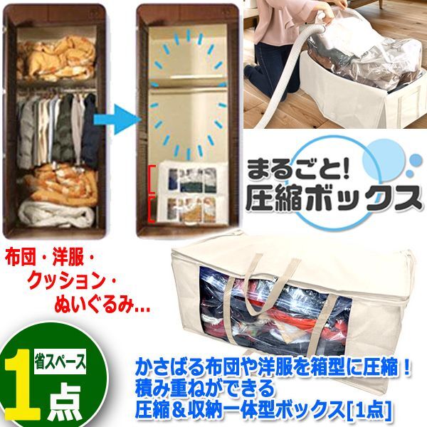 かさばる布団や洋服を箱型に圧縮!積み重ねができる圧縮&収納一体型ボックス[1点]