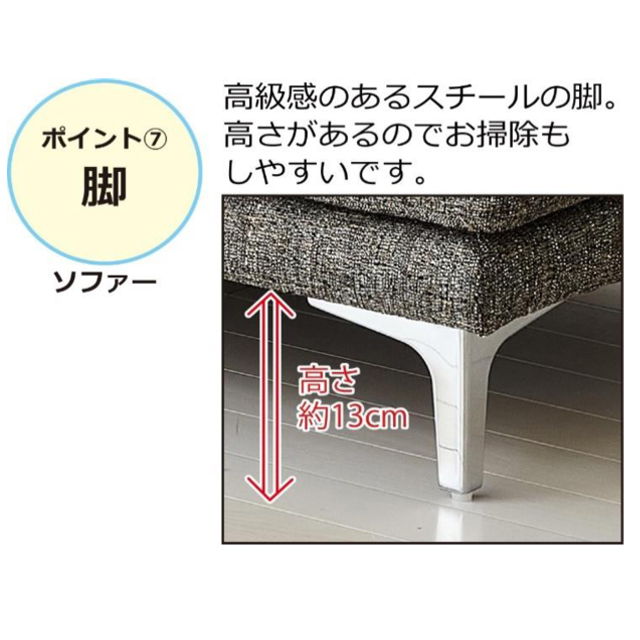 高級感のあるスチールの脚を採用。