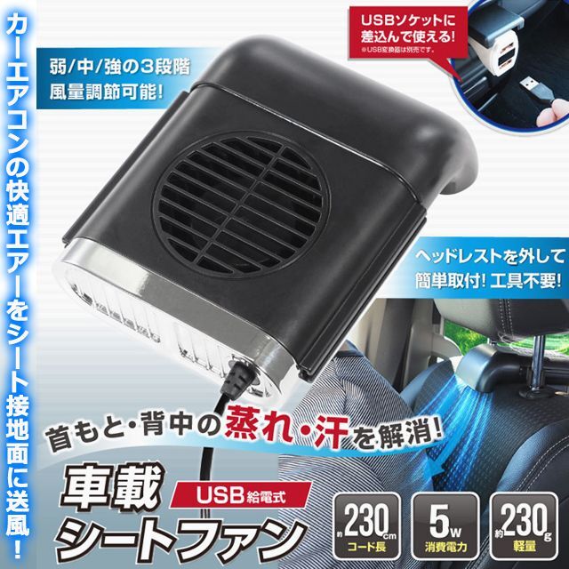 シート接地面にクールエアー!USBカーシートファン[1点] [ARR-44-1]