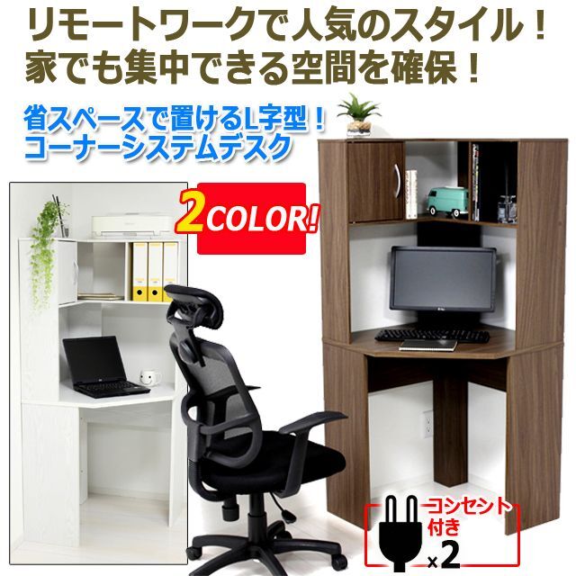 省スペースで置けるL字型!コーナーシステムデスク(コンセント付)