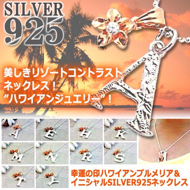 幸運の印ハワイアンプルメリア&イニシャルSILVER925ネックレス