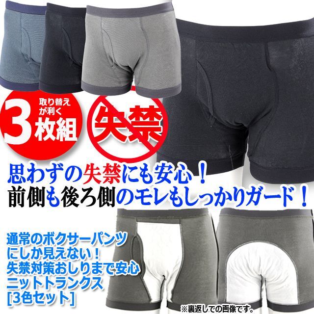通常のボクサーパンツにしか見えない!失禁対策おしりまで安心ニットトランクス[3色セット] [TIME-74]