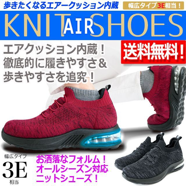 送料無料!履きやすい3E幅広タイプ!衝撃吸収ニットエアーソールシューズ
