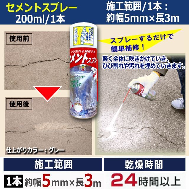 ひび割れ補修の仕上がりが違う!セメントスプレー×2本+専用定着液×1本