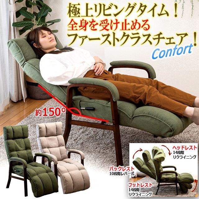 快適150°まで座ったままリクライニング&足まで楽々フットレストUP!