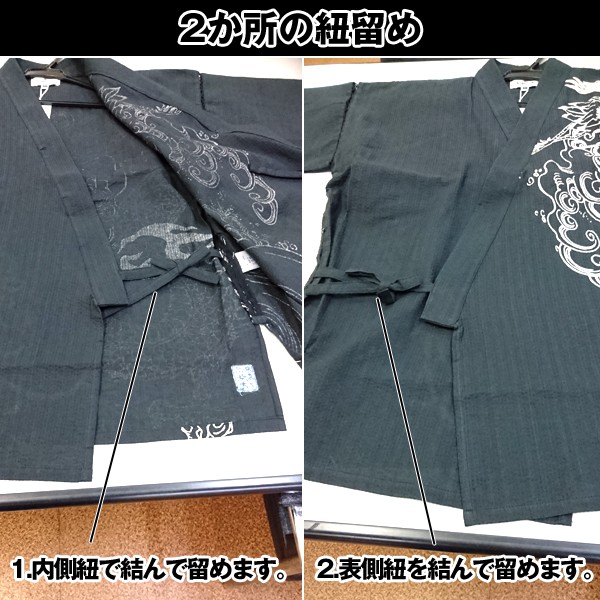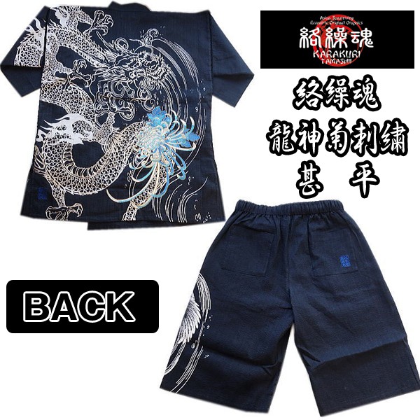 絡繰魂龍神菊刺繍甚平 (カラクリタマシイ,綿100%,しじら織,男性用,メンズ部屋着,夏,お祭りカジュアルウェア,刺繍,抜染プリント)