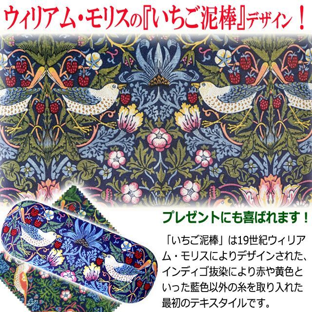 送料無料!ウィリアム・モリスの「いちご泥棒」メガネケースハードタイプ(メガネクロス付き)