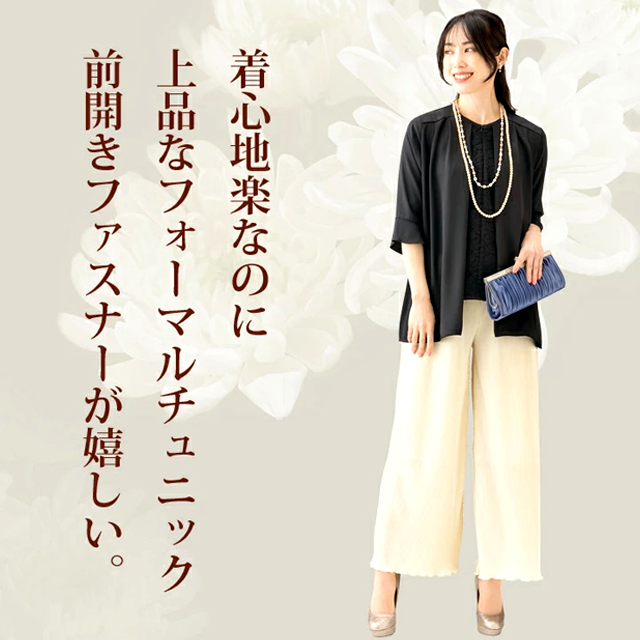 長め着丈 丸洗いOK 着脱楽 体型カバ― 前開きファスナー チュニック 葬儀 礼服
