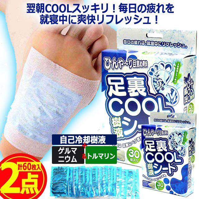 ゲルマニウム&トルマリン配合!ひんやーり目覚め爽快足裏COOL樹液シート計60枚入り[2点]
