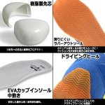 ■樹脂製先芯:つま先への圧迫と衝撃をプロテクト!JIS S級相当。