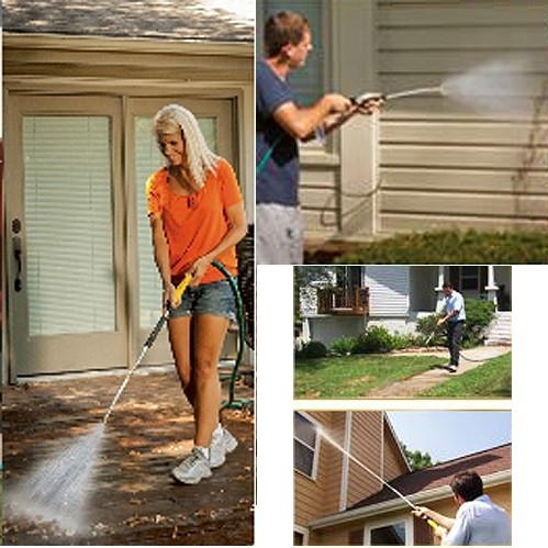 水流で洗い落とす高圧洗浄をご家庭の水道ホースに繋げるだけ!