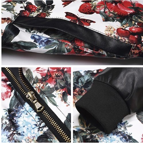 ブラックトーンと鮮やか花柄の切り替えしが、見事に一着のデザイナーズ・ブルゾンとして成立!