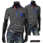 ヴィンテージボーダーライトポロ(ウェア/半袖/綿/コットン/ポリエステル/スリム/ビビットカラー/スポーティー/フロントボタンライン) [DSC-GOO-D20]