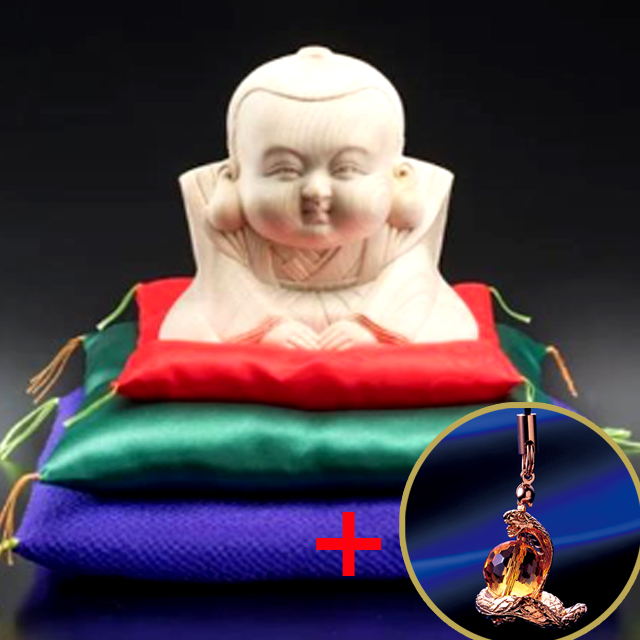 | 仕様 | 【だんだん福助】 ■サイズ:[本体]約高9×幅10×奥6.5cm [座布団](赤)約12×12×2cm (緑)約15×15×3cm(紫)約17×17×3cm ■重量:[本体]約120g [座布団](赤)約5g(緑)約15g(紫)約20g ■材質:天然檜 ■付属品:座布団×3枚 ■彫り師:葉偉混 ※天然檜を彫刻して1つずつお造りいたします。 写真とは、風合いが多少異なる場合もございます。 【巳年GOLDストラップ】 ■サイズ:約8cm ■重量:約15g ■材質:真鍮、黄水晶、ステンレスワイヤー ※期間限定品プレゼント企画(ST-260) |