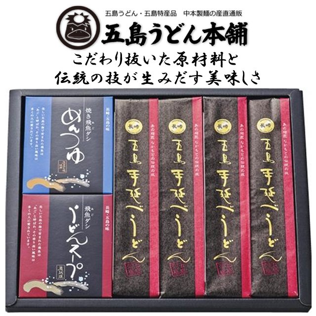 五島手延うどん 飛魚ダシ詰合せ あごだし 最高級黒和紙しげ 焼き飛魚だしつゆ 飛魚だしスープ 長崎県 中本製麺 地獄炊き 幻のうどん 贈り物 贈答品 ギフト プレゼント
