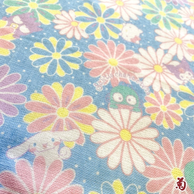 ■「サンリオキャラクターズ/菊」:淡い水色地のタオルにカラフルで艶やかな菊や小菊が散りばめられた素敵な一枚。