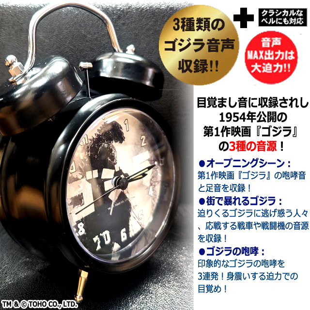 ゴジラ70周年記念音声目覚まし時計 クロック ツインベル アラーム レトロ