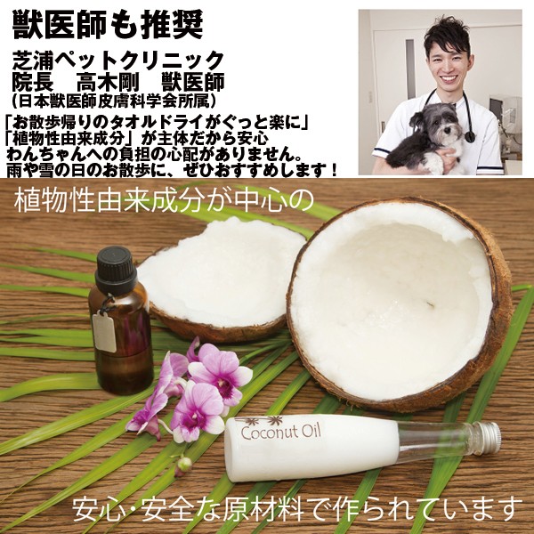 ベタつかずさらっとしていてお散歩後はタオルで拭きとるだけ!