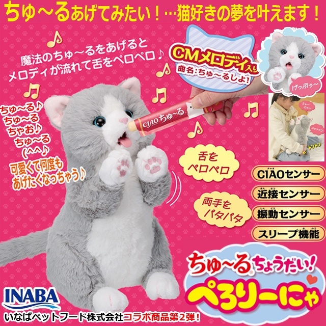 ちゅ〜るちょうだい!ぺろりーにゃ いなば ちゃおちゅ〜る ねこ ネコ 猫 動くぬいぐるみ 玩具 3才以上 CMメロディ センサー ペット 癒し系 ペットロス 日本おもちゃ大賞2025共遊玩具部門優秀賞