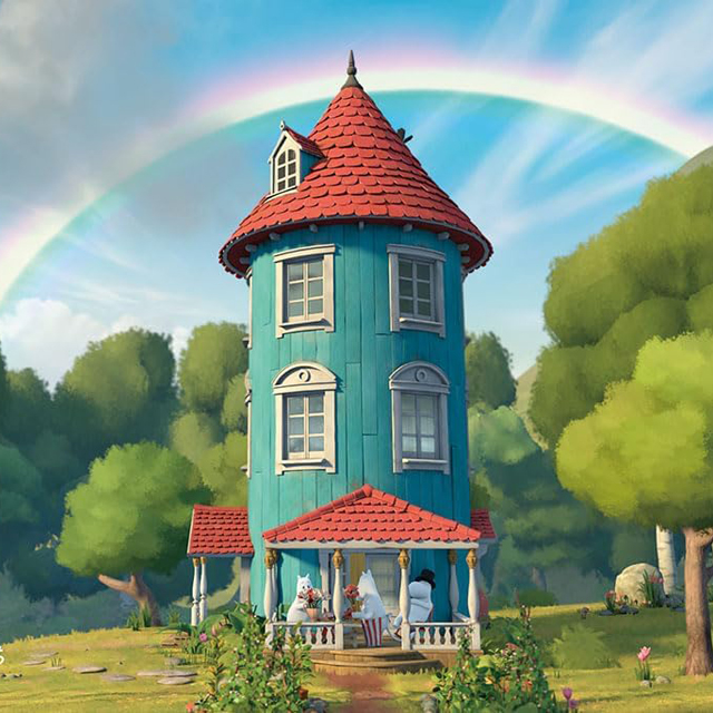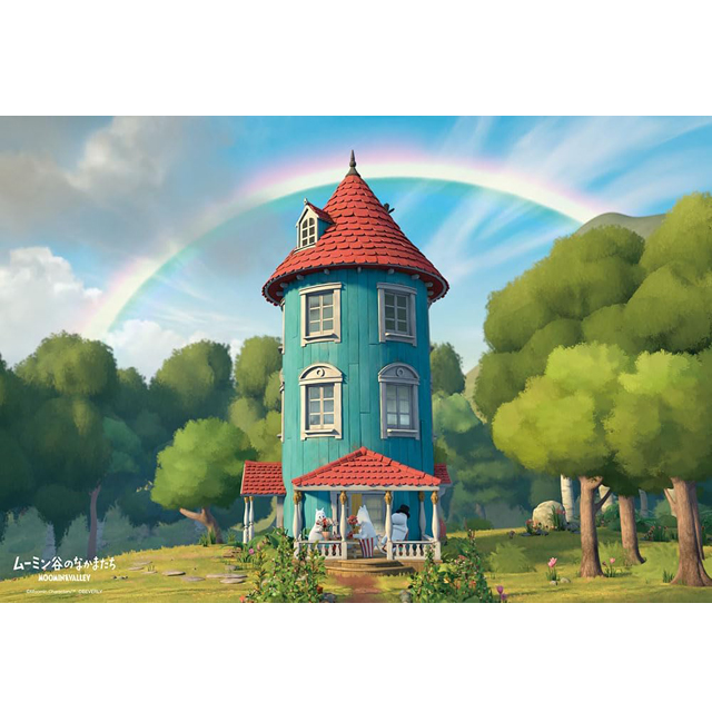 今回、ムーミン谷の象徴でもあるムーミンやしきに虹がかかった素敵な絵柄です。