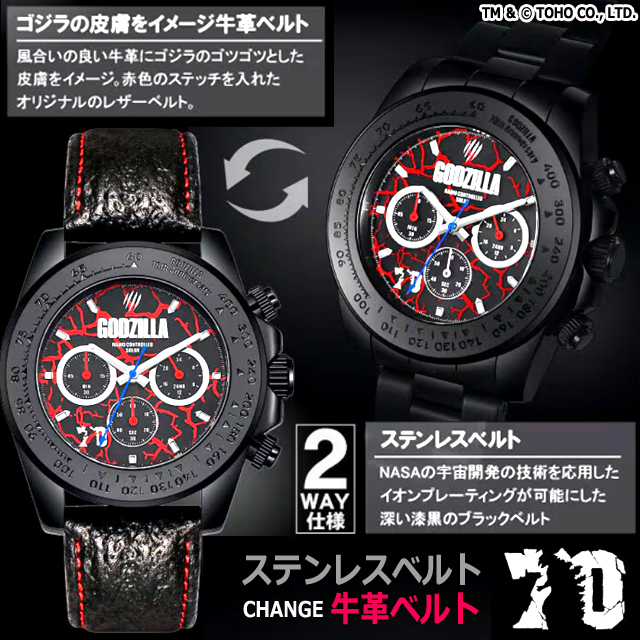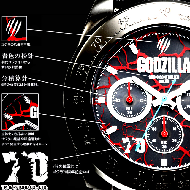 ゴジラ70周年記念電波ソーラークロノグラフ