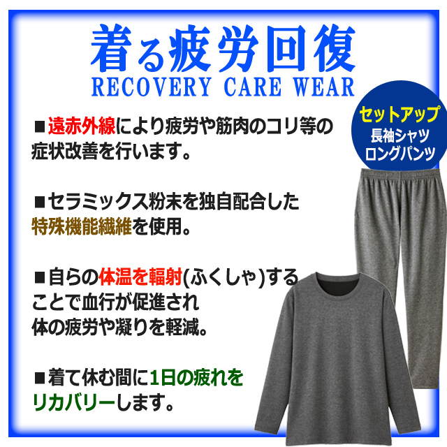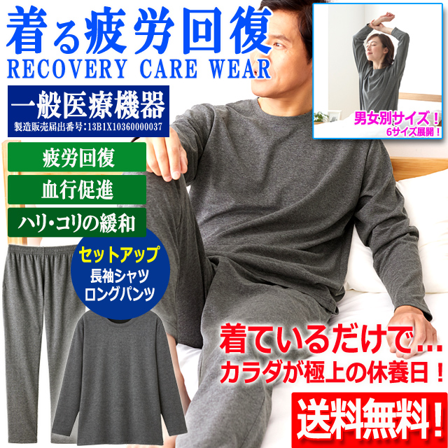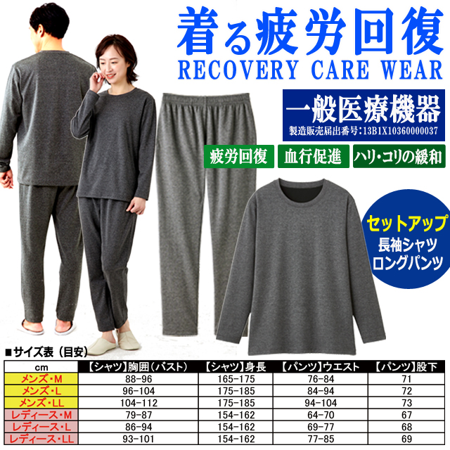 送料無料!一般医療機器 着る疲労回復リカバリーケアウエア セットアップ長袖シャツ&ロングパンツ