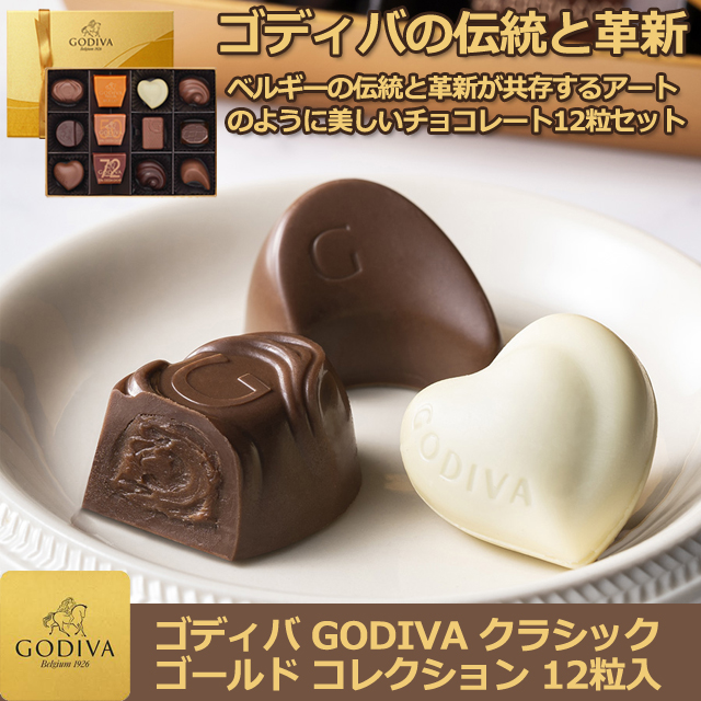 GODIVA ゴディバ クラシック ゴールド コレクション 12粒入 ベルギー原産 チョコレート 詰め合わせ バレンタイン プレゼント 贈り物 スイーツ ゴールドパッケージ プラリネ ガナッシュ