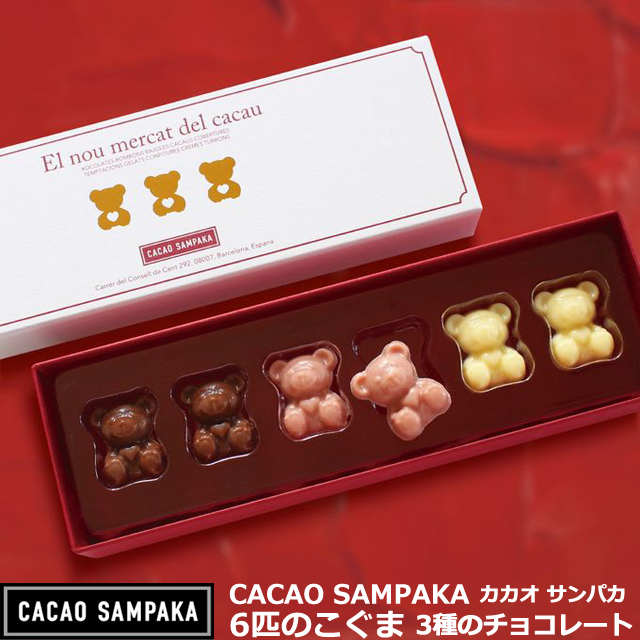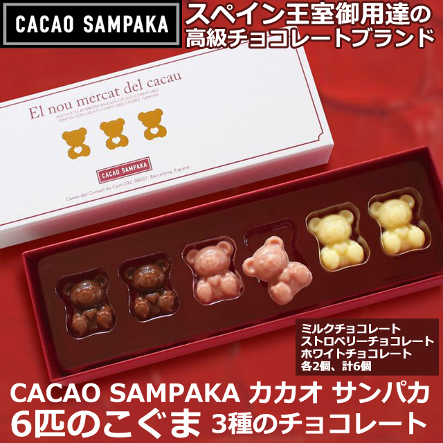 CACAO SAMPAKA カカオ サンパカ 6匹のこぐま 3種のチョコレート スペイン王室御用達 3種X2 6個詰め合わせ ミルクチョコレート ストロベリー ホワイトチョコレート バレンタイン プレゼント 贈り物 ギフト スイーツ