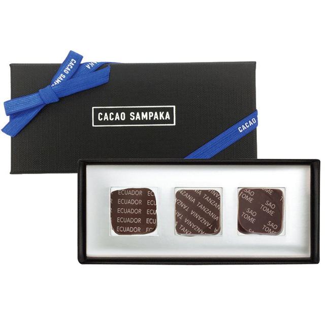 スペイン王室御用達の高級ブランド「CACAO SAMPAKA」(カカオ サンパカ)の3種の原産地別チョコレート・ボンボンショコラ。